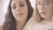 Depraved brunette teaches young blonde to suck penis and get fucked