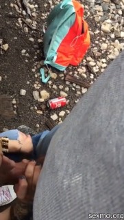 Makes a blowjob behind a train car