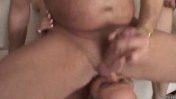 A cute blonde takes the dicks of men in her mouth, licks asses and drinks sperm