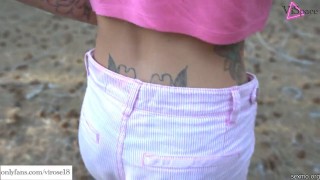 Skinny girl sucks and fucks in the forest